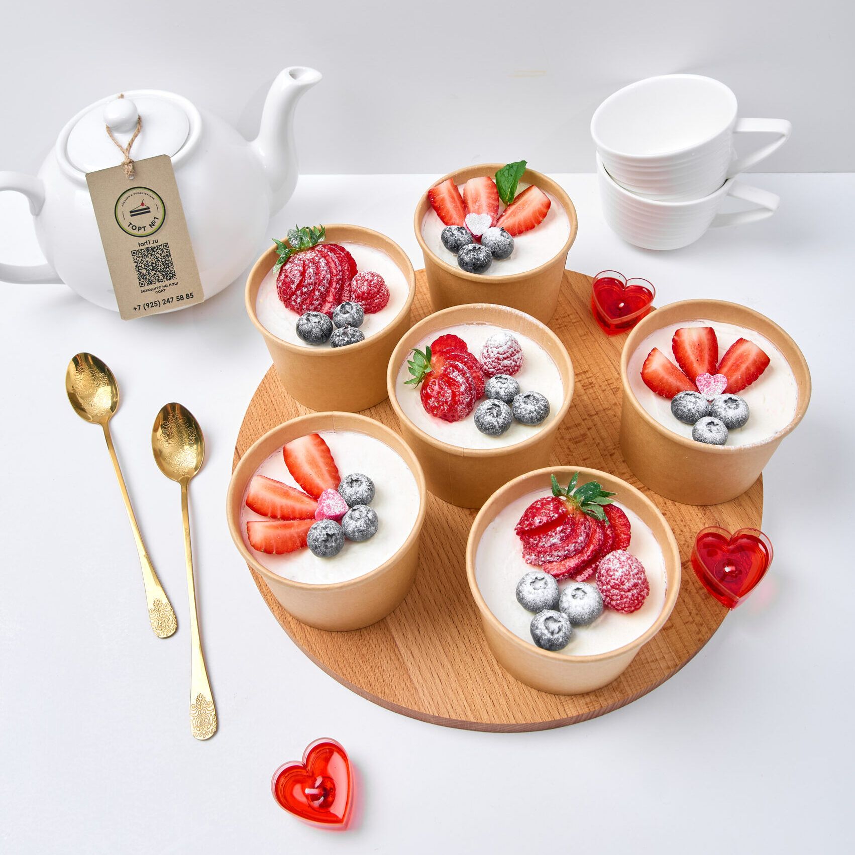 Идеальный десерт для тех, кто ценит и красоту, и удобство. Трайфлы — это не просто порция сладкого, а настоящее мини-произведение искусства в крафтовом стаканчике. Воздушные бисквиты, нежные кремы, хрустящие крошки и сочные прослойки создают фейерверк вкусов и текстур. А сверху каждый стаканчик увенчан щедрой горстью свежих сезонных ягод, добавляющих яркий цвет, природную сладость и завершающий штрих свежести.